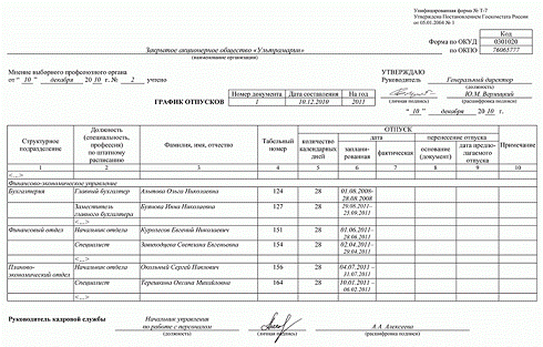 штатного расписания № Т-3, которая утверждена постановлением Госкомстата РФ №1