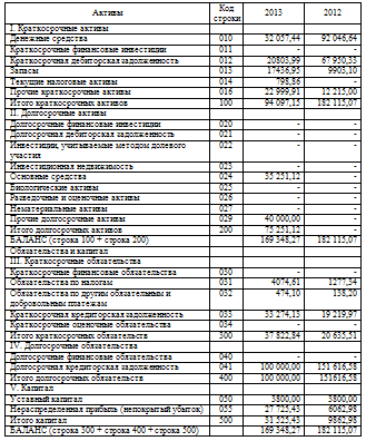 за период с 01.01.2013 по 31.12.13 гг., включая бухгалтерский баланс, отчет