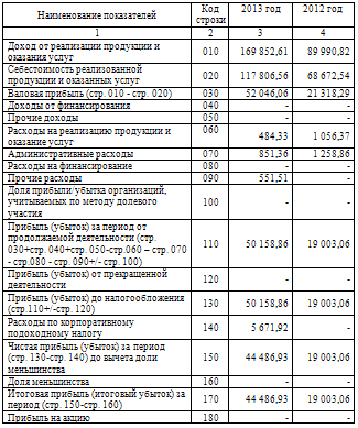 Отчет о прибылях и убытках ТОО