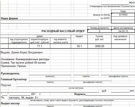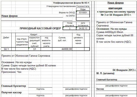 приеме на работу, приходные и расходные кассовые ордера, платежные поручения,