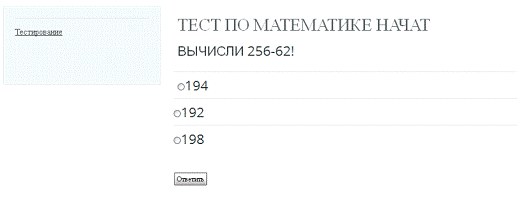 Пример работы теста Web-сайта по проверке уровня знаний математики учениками