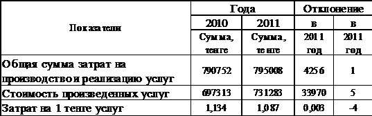 базисным годом, в 2011 году затраты на 1 тенге услуг уменьшились на 0,003 тенге