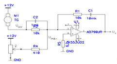 операционного усилителя регулятора тока U2 поступает сигнал обратной связи и сигнал задания стопорного