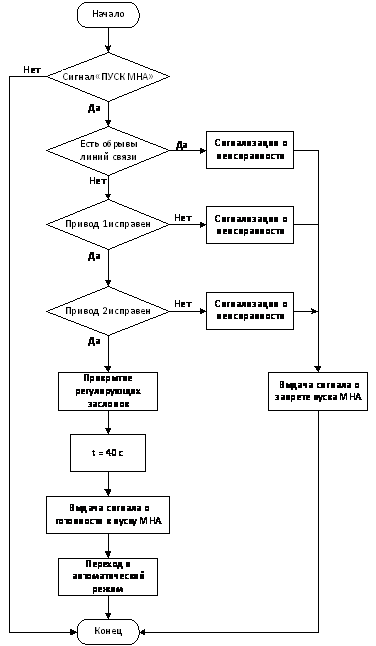 . Блок-схема алгоритма прикрытия заслонок перед пуском МНА.