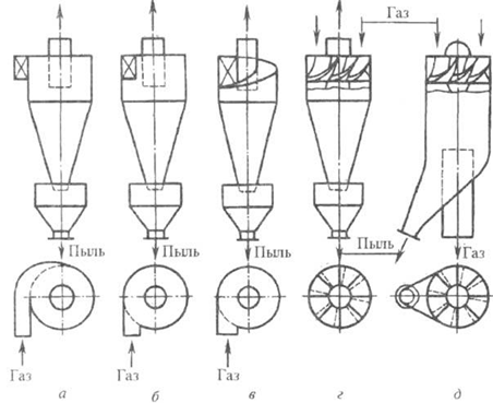 обычного циклона преимущественно способом ввода запыленного газа, который
