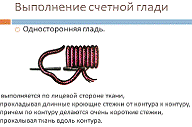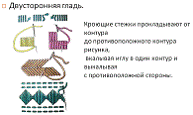 счетной глади. выполняется по лицевой стороне ткани, прокладывая длинные