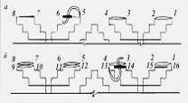 отстоящими друг от друга на некотором расстоянии стежками разного наклона и