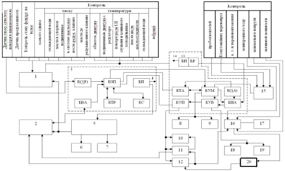 датчик осьового зрушення; 4 - датчик перепаду тиску; 5 - датчик контролю