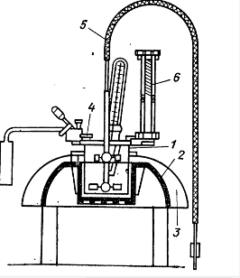в нагреве пробы нефтепродукта закрытом тигле с установленной скоростью до тех