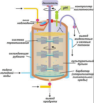 перемешивается. Продуктом являются либо сами клетки (биомасса), либо какой-то