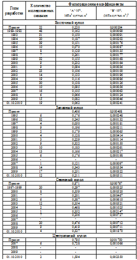 скважин, проведенных в 2010 году, фильтрационные коэффициенты изменялись в