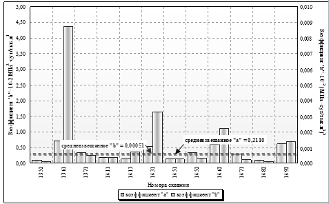 0,327·10-2 (МПа2 сут/тыс.м3);"b" равно 0,00187·10-2