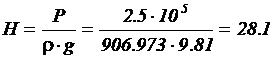 Переведем давление, развиваемое насосом, в напор, для более наглядного