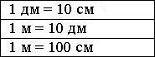 У: (на доске: 1м-100см). Сколько дециметров в 1 метре?