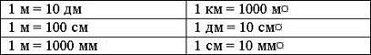 единиц измерения и с переходом от одной единицы измерения к другим (таблица