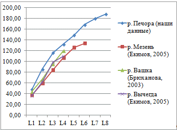 водоемах бассейна р. Печора, реже приводятся данные об их размножении и росте.