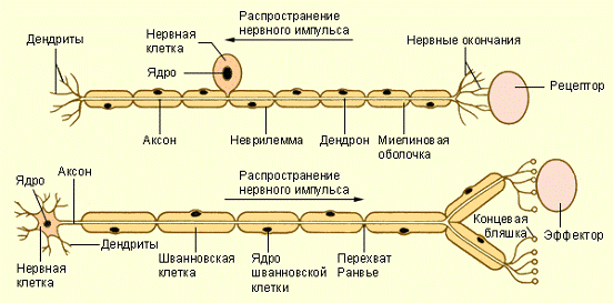 Распространение нервного импульса по отросткам