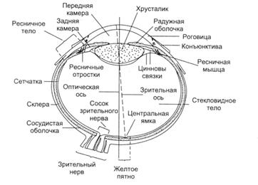 восприятие. Так, орган зрения состоит из глазного яблока, сетчатой оболочки, в