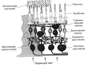 составе которой имеются зрительные рецепторы, и ряда вспомогательных структур: