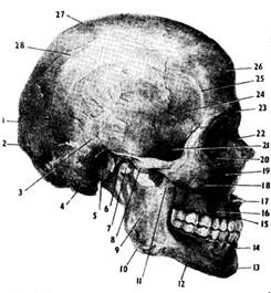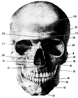 костей, двух скуловых и одной непарной нижнечелюстной кости. Большое