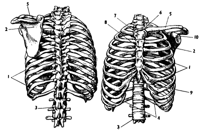 покрытый широчайшей мышцей; 8 - широчайшая мышца спины; 9 - позвоночник; 10 -