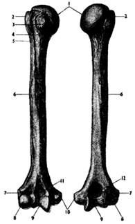 костью; 5 - лучевая бугристость; 6 - шиловидный отросток; 7 - суставная