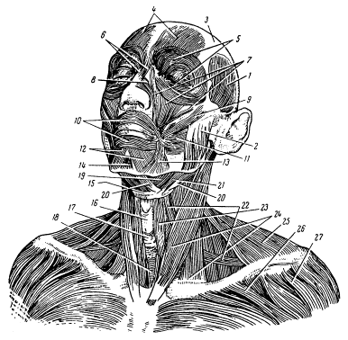 Рис. 7 - Мускулы головы и шеи (вид спереди):