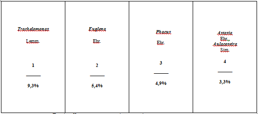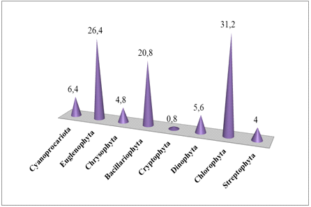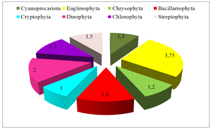 Співвідношення різних відділів водоростевих угруповань р.