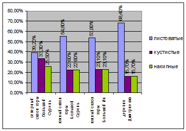 приуроченность эпифитных лишайников к различным породам деревьев.