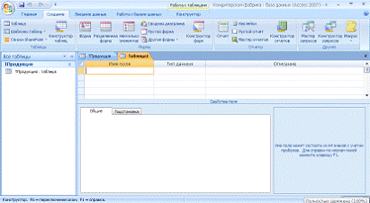вкладке «Создание» пиктограмму «Конструктор таблиц». На экране появляется окно