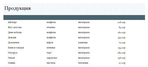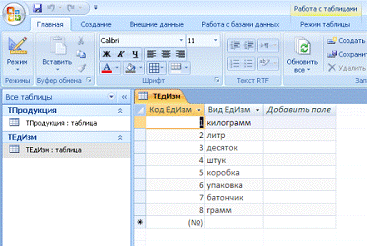 Таблица содержит информацию об единицах измерения и будет использоваться в базе