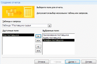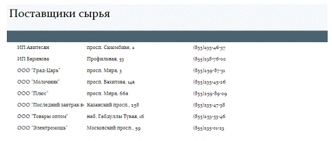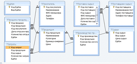 созданных таблиц списки поставщиков сырья. Для этого необходимо перейти во