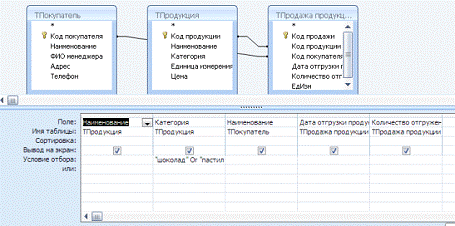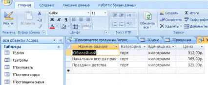 продукции. Создадим многотабличный запрос. Выбрать вкладку Создать в окне базы