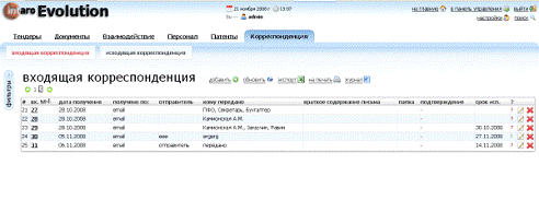 входящей и исходящей корреспонденцией.