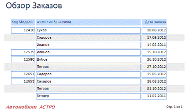 заказы» выбираем поля «Фамилия заказчика» и «Дата заказа» и жмем Далее. Вид