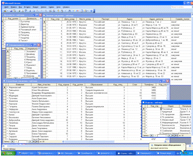База данных «Кадры» должна содержать несколько таблиц: основная и