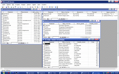Паспорт, Адрес, Адрес_регистр, Семейн_полож, Число_детей] и Вспомогательные