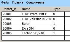 таблицы БД: Таблица принтеров для изготовления печатных плат