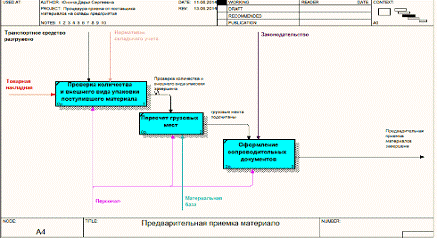 модельного проектирования бизнес-процесса «Прием материалов на склады