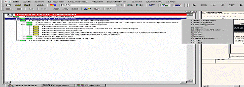 Работы с диаграмм IDEF0 показываются зеленым цветом, IDEF3 -