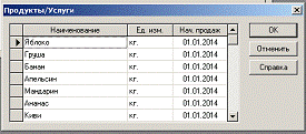 продуктов» указывается наименование товара, единица измерения и дата начала