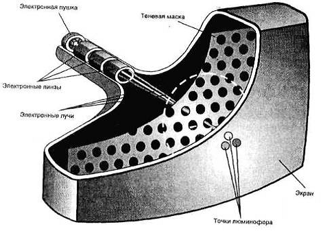 электронов, разогнанных в вакуумной колбе. Для получения цветного изображения