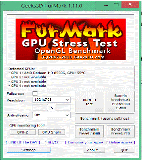 режим работы. FurMark пользуется популярностью у лиц, занимающихся ремонтом и