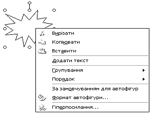 автофігуру, таку як овал або зірка, клацнути правою кнопкою миші, контекстне