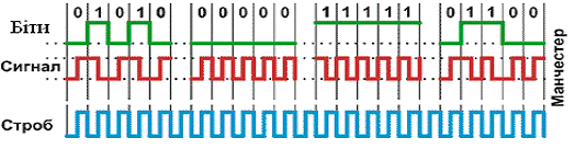 коду - манчестерського, NRZI, MLT-3 та ін.