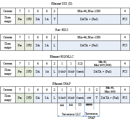 • кадр 802.3/LLC (кадр 802.3/802.2 або