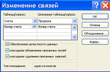 их на подчиненную таблицу. Далее в правой половине окна Изменение связей (Рис.
