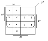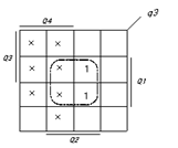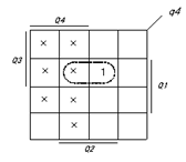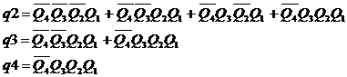 е) По таблице 4 составляю комбинационную схему в СДНФ. Видно, что q1=1. Выпишу СДНФ для q2,q3,q4 и минимизирую