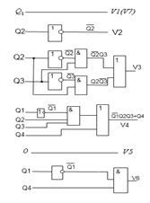 вырабатывает сигналы V1-V7 и W, имея на входах сигналы Q1-Q4. Т.е.