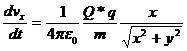 (1/ (4*pi*0.85e-12)) * (q1*q2/m) * (y/sqrt (x*x+y*y));